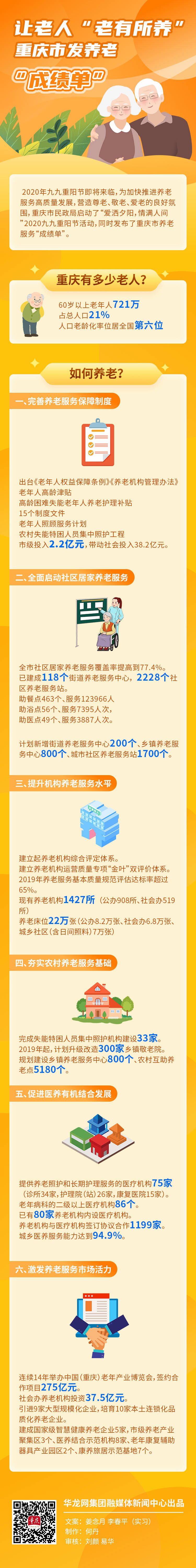 为加快推进养老服务高质量发展,努力营造尊老、敬老、爱老的良好氛围,让全社会关心、关爱、关注老年群体,持续满足老年人日益增长的对美好晚年生活的向往,不断提升老年人的幸福感、获得感。重庆市民政局举办了“爱洒夕阳,情满人间”2020九九重阳节活动,发布了全市养老服务工作情况,规划出未来重庆人的养老蓝图。